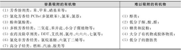 活性炭濾料容易和難以吸附的有機物如下圖 ↓